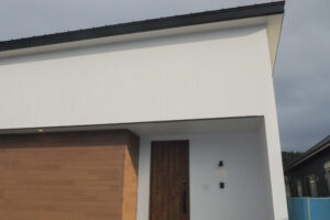 グレーの塗り壁に黒が映えシンプルでかっこいい外観です。