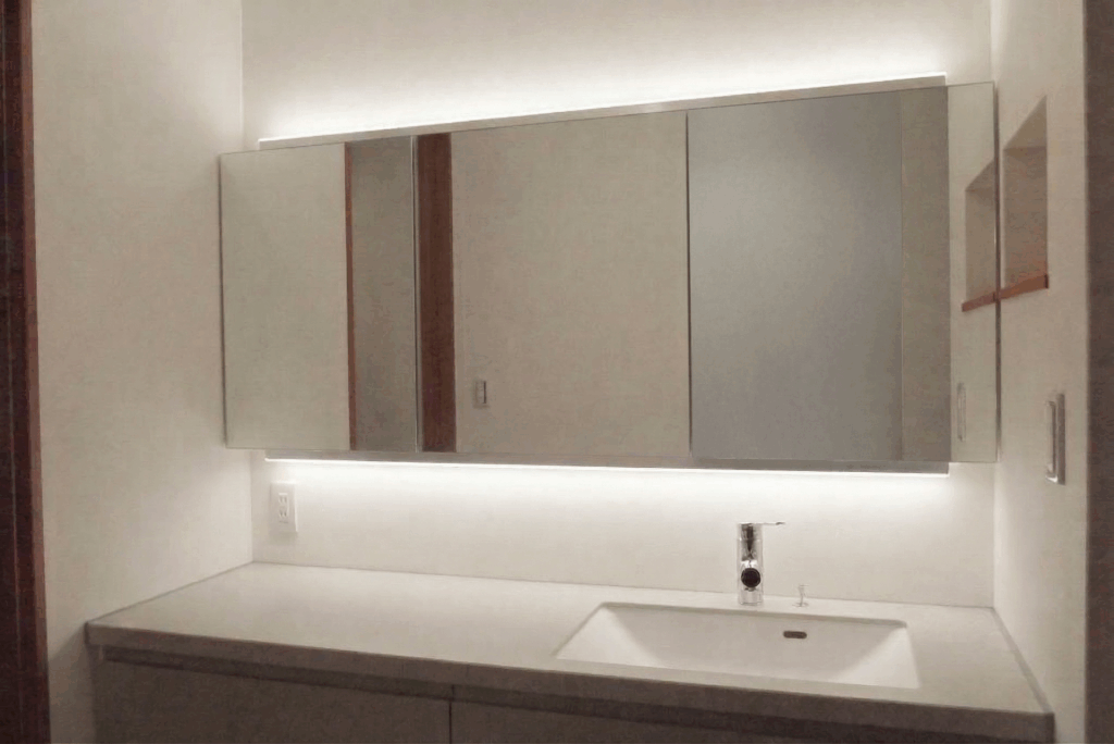 間接照明が空間の質をあげてくれている洗面台スペース。